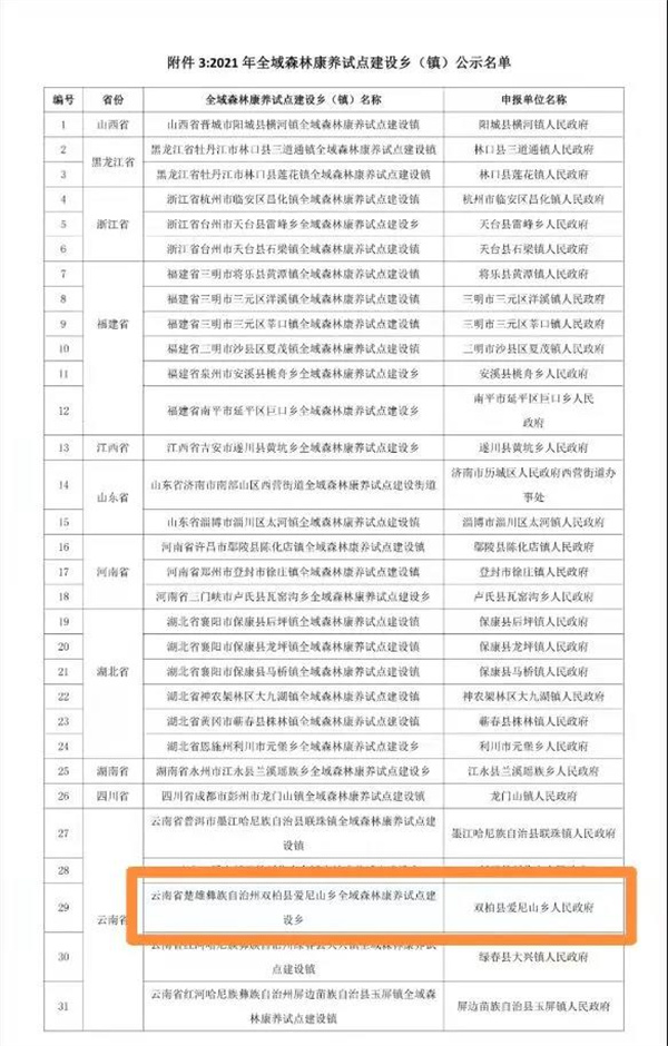 雙柏縣愛尼山鄉(xiāng)入選2021年全域森林康養(yǎng)試點建設鄉(xiāng)