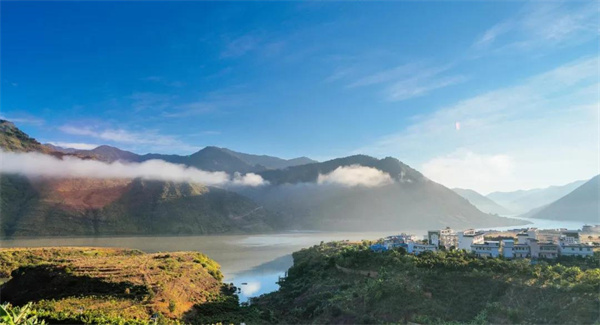 清晨,行至江邊,竟見(jiàn)一灣碧綠的江水。兩岸起伏的山峰掩映在薄霧里,風(fēng)起時(shí),霧溪谷,嵐靄飄逸,夢(mèng)一般旖旎曼妙,情一般輕柔纏綿。注視著江水中的倒影,將一顆世俗的心沐浴在一片清瑩里。置身其間,感覺(jué)這里所有的景物都在緩慢中后退,仿佛是一部充滿異域風(fēng)情的電影,那些依次出場(chǎng)、退場(chǎng)的人和物的片段,在記憶的印痕里逐漸清晰、明朗,從此,那些藏在金沙江里的歲月過(guò)往,就被一個(gè)個(gè)映射出來(lái)......