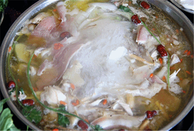 昭通天麻火腿雞火鍋,聽起來就是滿滿養(yǎng)生的感覺——昭通小草壩天麻、宣威火腿、文山三七、土雞,再配以西洋參、大棗、枸杞等多種尊貴藥材,營養(yǎng)價值爆表有木有!