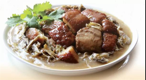用芭蕉的清香帶出紅燒肉的美味,味道香醇不油膩,兩者配合相得益彰,讓人回味無窮。不論菜名是“芭蕉花燉紅燒肉”還是“軍民魚水情”,這道菜在滿足大家味蕾的同時(shí),也會(huì)讓人情不自禁想起當(dāng)年那些感人至深的故事。來到麻栗坡,身處青山碧水,品嘗到這道美食,才是不虛此行。