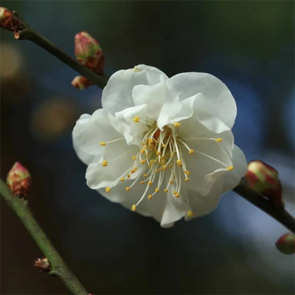 即便冬日的雪總是不太會光顧春城,但默默綻放在枝頭的白梅,如銀雕玉環(huán)雪,或疏淡或繁密,好似雪花的摯友在此靜默低語,不是雪又勝似雪。
