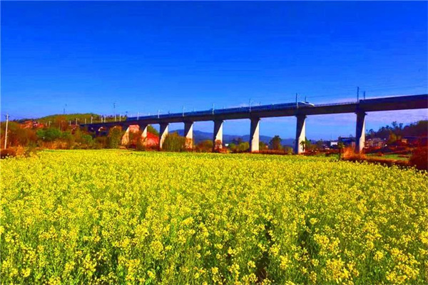 楚雄子午鎮(zhèn)的油菜花,已于近日盛開,花田里蝶飛蜂鳴,花田旁農(nóng)人忙碌,白墻黛瓦掩映花間,形成一幅鄉(xiāng)村水墨山水畫卷。你可以去尋春色了,去感受“兒童急走追黃蝶,飛入菜花無處尋”的意境。