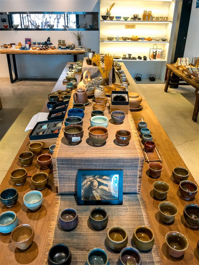 踏入門內(nèi),位于正中央的桌子上擺放著一枚枚精美的陶器。陶器有大有小,外表光滑圓潤,不同的種類擁有不同紋路,僅僅是看著就讓人愛不釋手。