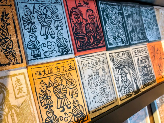 一旁的架子上擺放著白族甲馬制成的手工紙筆記本,那些色差強(qiáng)烈、線條粗獷的神像封面一下子就能抓住人的眼球,獨(dú)特而又新穎。