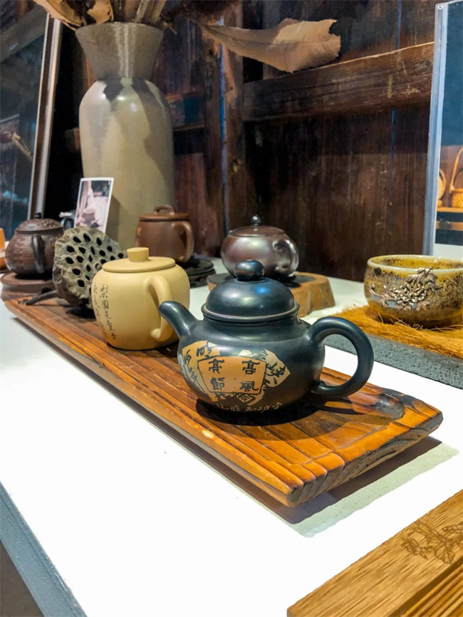 漫步在拾翠接待中心的展廳里,總能在不經(jīng)意間發(fā)現(xiàn)很多驚喜。這里不僅有非遺大師制作的建水紫陶茶壺,還有手編的竹筐等等。