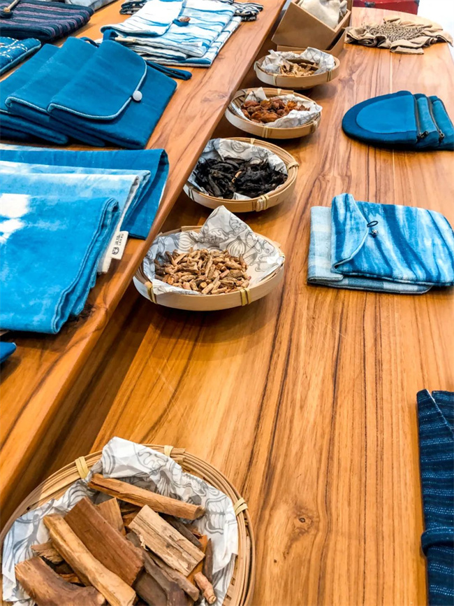桌子上還有布匹的原料展示,從粗糙的植物原料到柔順的布匹,民族工藝就是這么化腐朽為神奇。