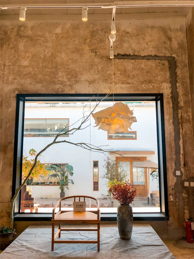 整個(gè)展廳的面積非常廣闊,內(nèi)部區(qū)域的協(xié)調(diào)和劃分也很講究藝術(shù)性??葜?、陶罐、木椅,幾樣?xùn)|西隨意搭配起來,便自成一方景色。