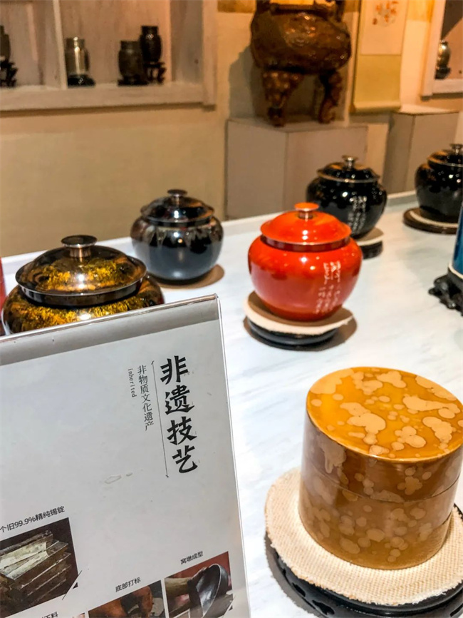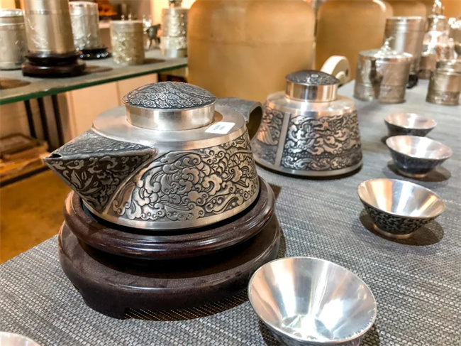 這里的金屬原料以錫為主,它們來自世界錫都——個(gè)舊,并且內(nèi)部所有金屬制品皆由大師精心制而成。車間內(nèi)的金屬制品很多,不同種類、不同樣式、不同工藝,應(yīng)有盡有??梢哉f這里簡直就是一個(gè)金屬愛好者的天堂。