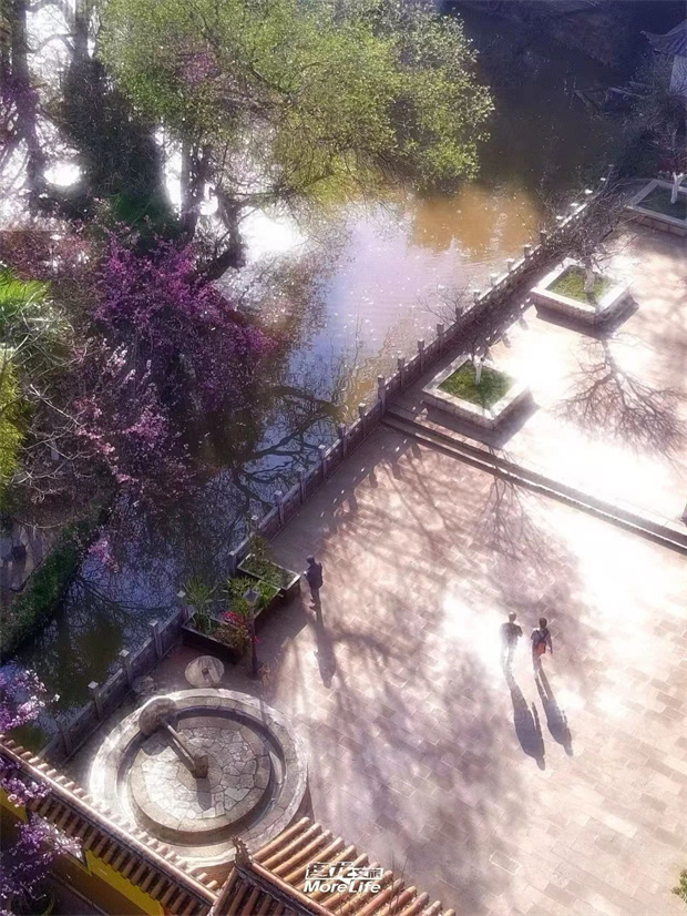 旋舞蹈。公園里,潭水是天然的硯臺,將龍泉觀的飛檐、宋柏的虬枝與漫天的花云盡數(shù)拓印。站在石拱橋上看自己的倒