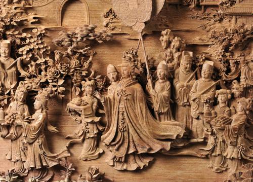 白族民居木雕畫:云南大理白族木雕是白族民居建筑中的重要組成部分。白族工匠巧妙地用木雕技藝進(jìn)行裝飾,使建筑在使用和觀賞上達(dá)到最大限度的融合。在不斷吸收漢族先進(jìn)的文化過程中,發(fā)展了具有鮮明特色的白族木雕工藝。