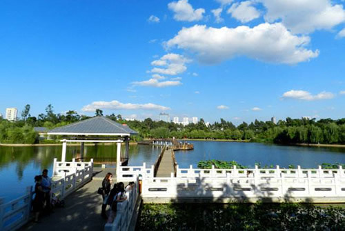公園占地十六萬平方米,其中水面積五萬余平方米,綠化率達(dá)百分之七十,是一座以自然風(fēng)光為主體的現(xiàn)代園林公園。同時(shí)也是云南省首個法制公園。