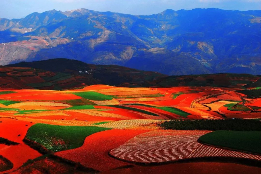 東川紅土地一年四季都是絢爛的。春季開滿蕎花和洋芋花的田野,紅白色塊明亮可人;初夏條狀、反光的地膜,宛如木刻畫;秋季的油菜花、晚霞,絢爛多彩;冬季初雪鋪滿大地,宛如圣潔的天堂。