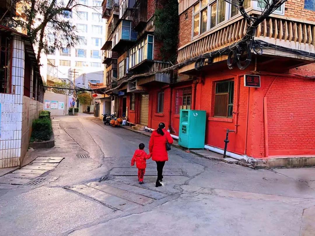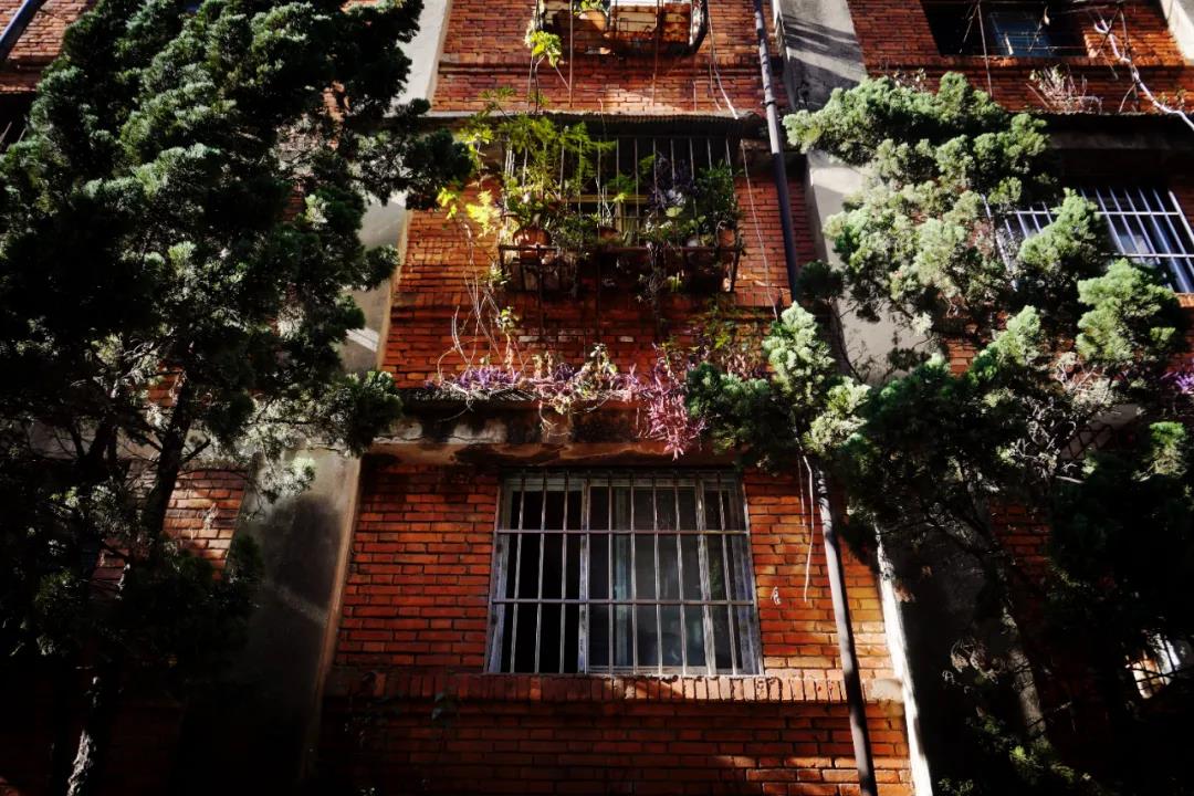 這里老舊的樓層錯落著,磚紅色的墻面有著歲月的斑駁,坑坑洼洼的水泥地上長出了青色的苔蘚,紅與綠的交錯中,復(fù)古大片的質(zhì)感油然而生。