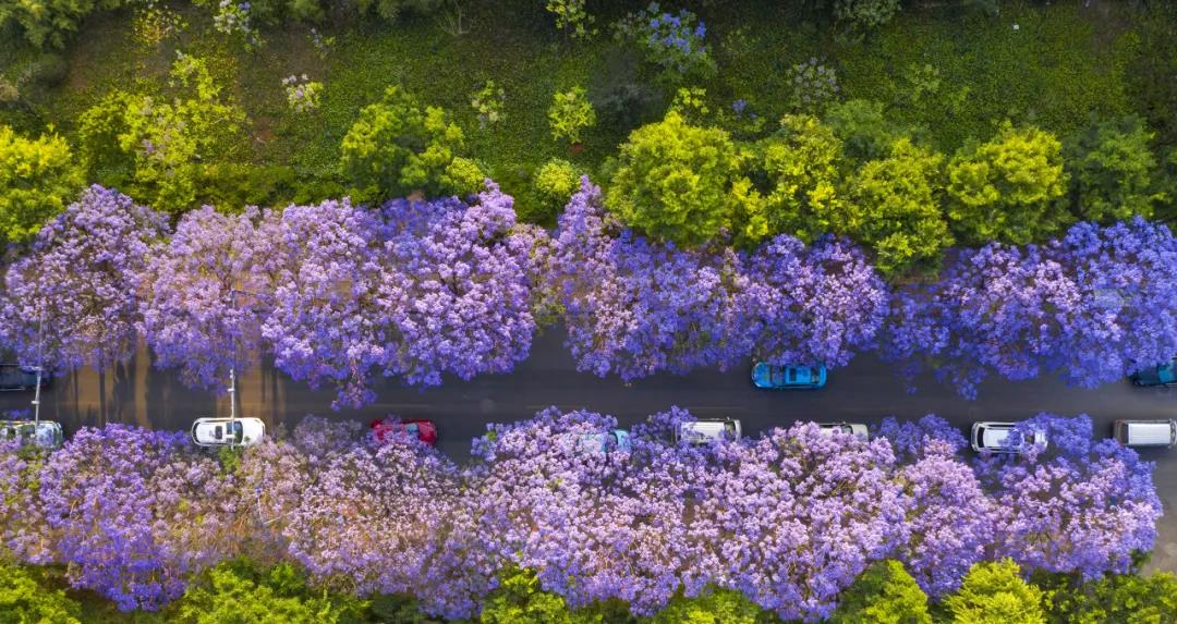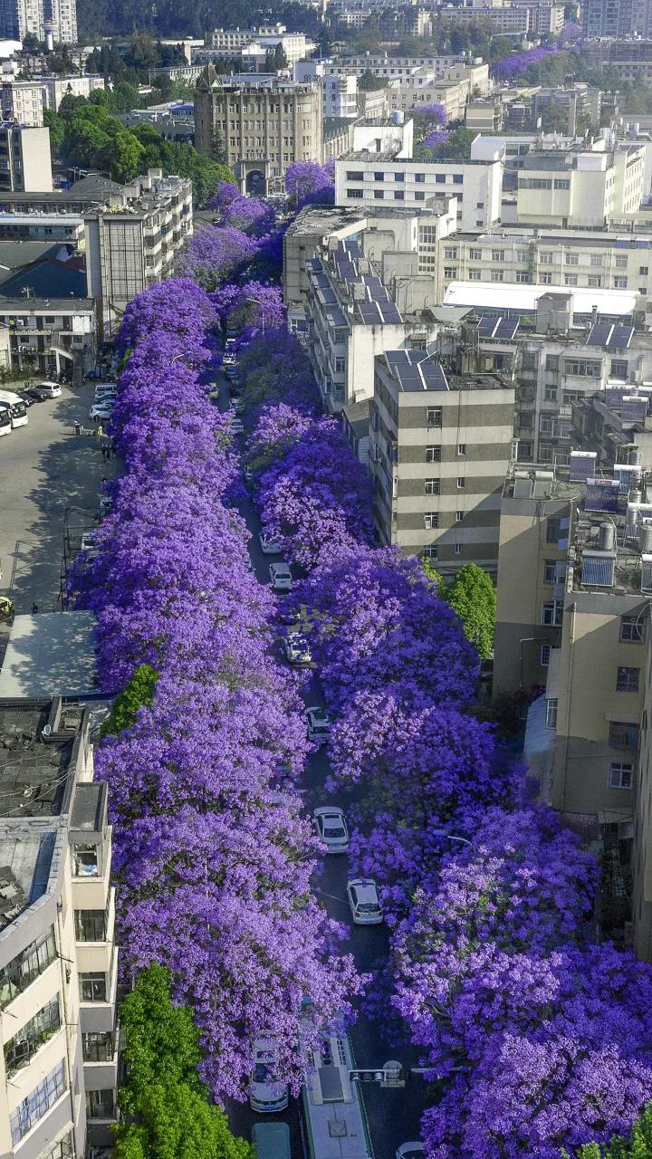 整個昆明彌漫在一片紫色海洋中