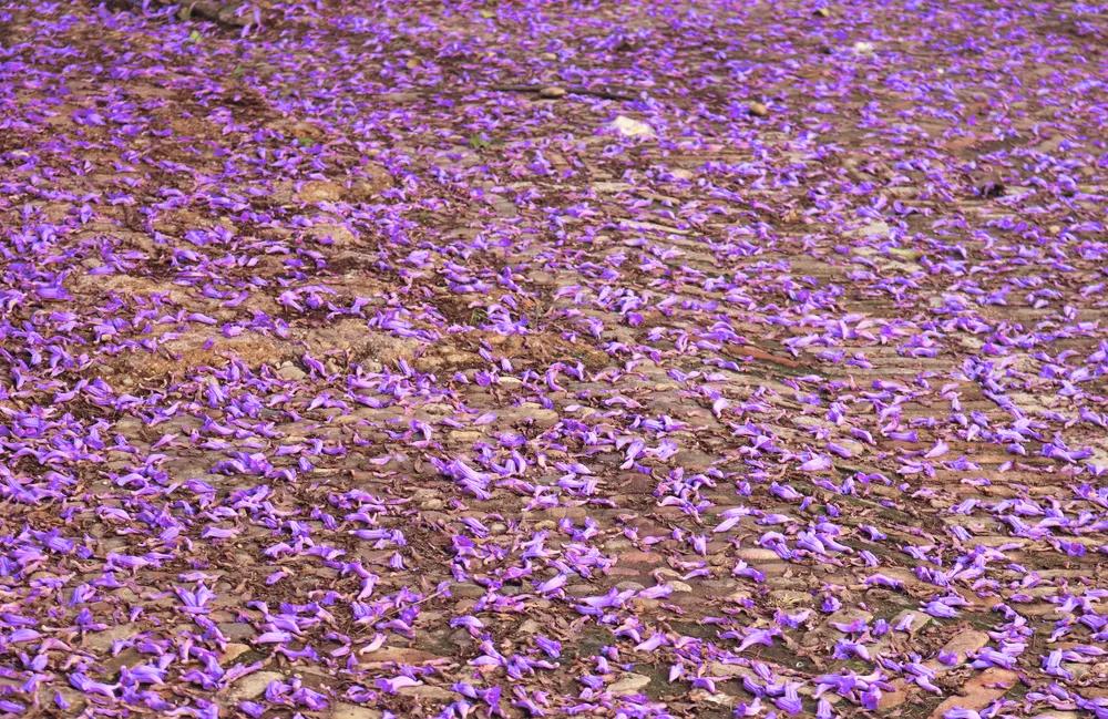 地上又灑滿了地毯般的紫色花瓣
