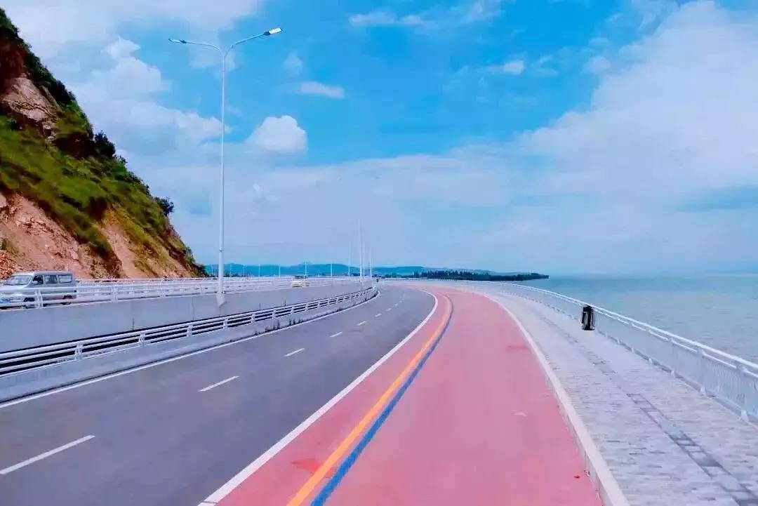 環(huán)滇池騎行路長(zhǎng)、較平緩、坡度小,高海路一段景色秀美,但一定要注意防曬。過(guò)了??诠?,卡車和行人、村鎮(zhèn)增多,注意避讓,注意防塵。