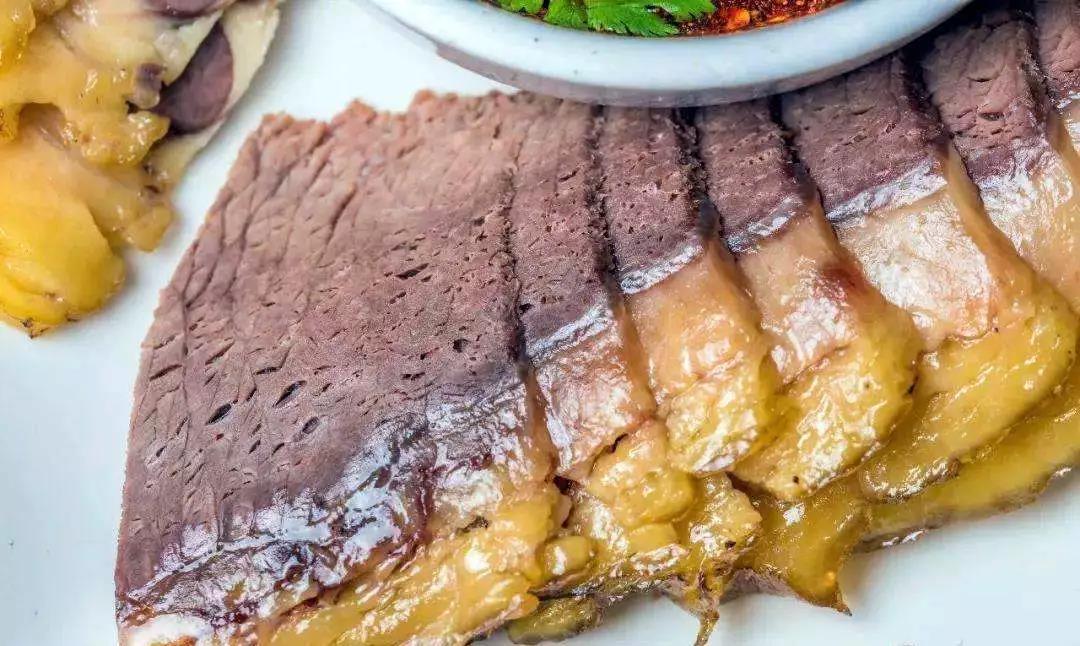 還有牛肉冷片,這個(gè)怎么能漏掉?它可是昆明十大名菜之一,肉質(zhì)沙壯,鮮香不膩,夾一塊蘸上各家秘制的醬料,往嘴里一放,那個(gè)香、甜、爽口,一吃難忘。