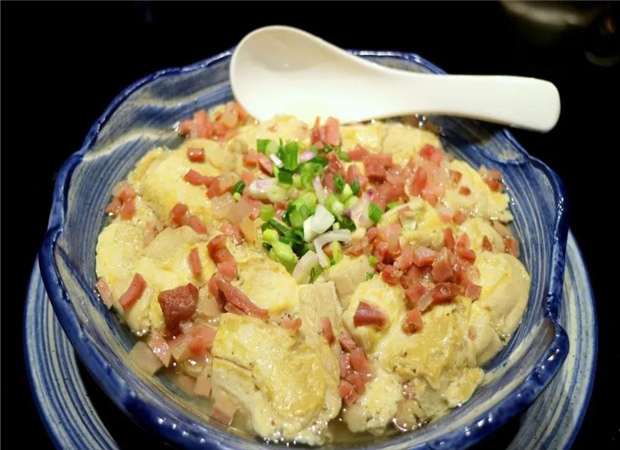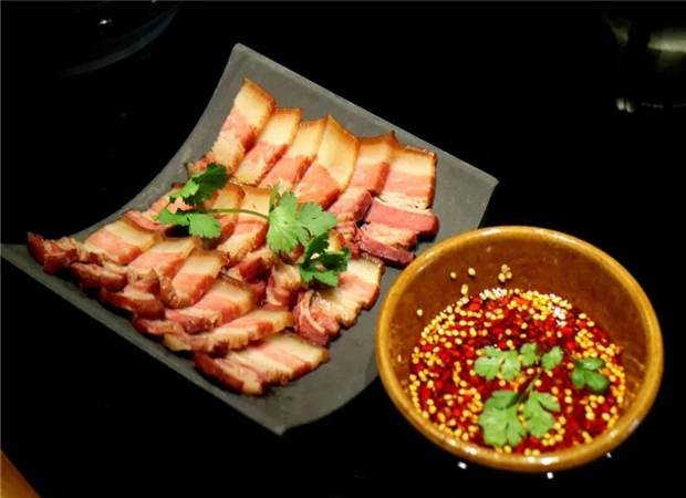 不急不急,還有:燒熟的茄子和大紅菜椒切條,佐以酸辣爽口的料汁;異香撲鼻的火腿丁蒸臭豆腐;紅白相間、咸香迷人的臘肉涼片,一定要配上一碟子麻辣蘸水才夠味;干煸牛干巴和藕片又香又有嚼勁;一整塊清清白白大豆腐,澆上紅艷艷的涼拌汁,簡(jiǎn)單粗暴有味道……