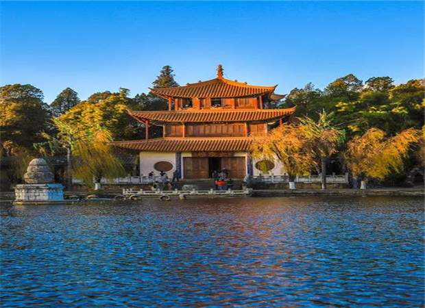 尤其是湖心島上,更是有湖心亭和觀魚樓等清代建筑,飛檐黃瓦造型美觀,與秋日色彩相融,將翠湖點(diǎn)綴得秀麗清新。