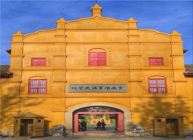 它始建于1909年,初建時(shí)被稱為全國三大講武堂之一,目前建筑群依舊保存完好,黃色的外觀吸引了無數(shù)攝影師的鏡頭