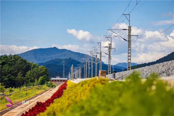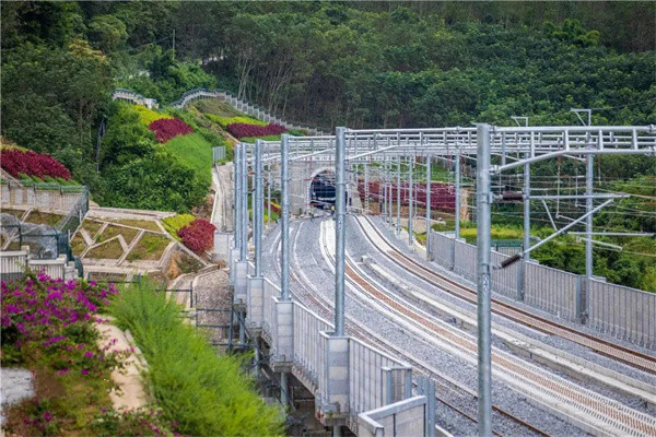 堅(jiān)持建設(shè)與節(jié)約資源、環(huán)境保護(hù)并重,像對(duì)待生命一樣對(duì)待生態(tài)環(huán)境是中老鐵路建設(shè)遵循的原則?!把壑杏谢?,窗外有綠,這將是‘人在車中坐,車在畫中行’的景象?!?br />