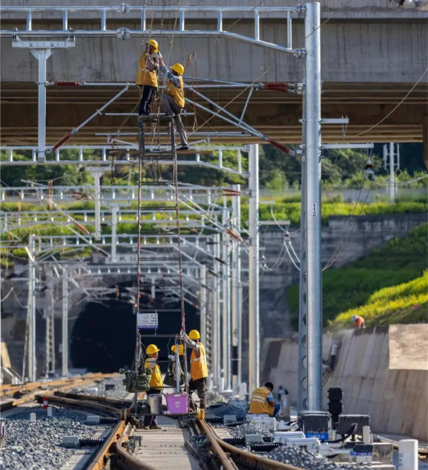 2021年10月12日,在曼木樹隧道洞口,隨著最后一段鋼軌被安放到位,中老鐵路全線鋪軌完成;