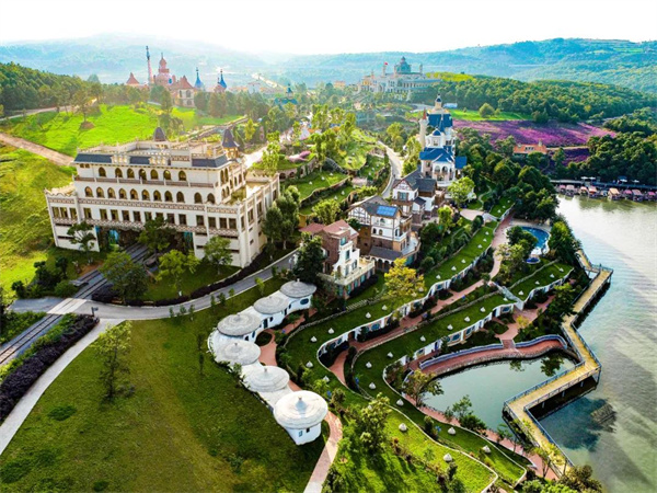 小鎮(zhèn)依托3295畝的鳳龍灣水庫(kù),森林覆蓋率達(dá)83%的良好生態(tài)資源,和敘昆米軌、貴昆準(zhǔn)軌、三橋同心等遺址資源,發(fā)揮位于昆明1小時(shí)交通圈的區(qū)位優(yōu)勢(shì),形成山——湖——河流——森林——白鷺棲息——田園風(fēng)光——童話建筑風(fēng)貌為一體的景觀格局,打造生態(tài)童話小鎮(zhèn)。