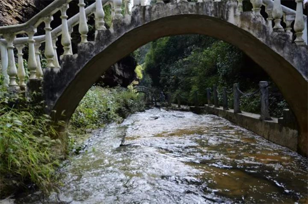 地河自山谷裂口涌出