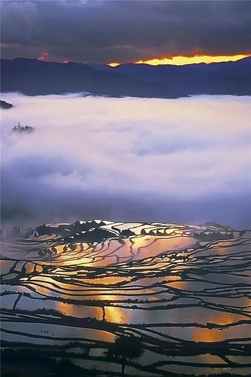 世界上集中連片最大的梯田,好似藏在哀牢山中的一塊璞玉,令人心馳神往。在這里,梯田與村莊、森林、水系相映成趣,構(gòu)成了一幅幅美麗的畫(huà)卷。梯田云海厚實(shí)變幻莫測(cè),晨光燦爛柔美,氣勢(shì)壯觀(guān),姿態(tài)美妙。
