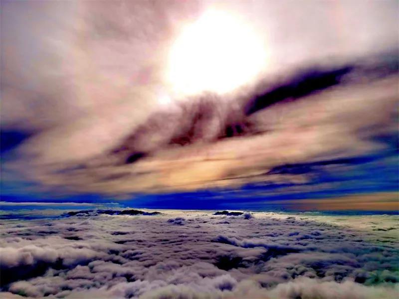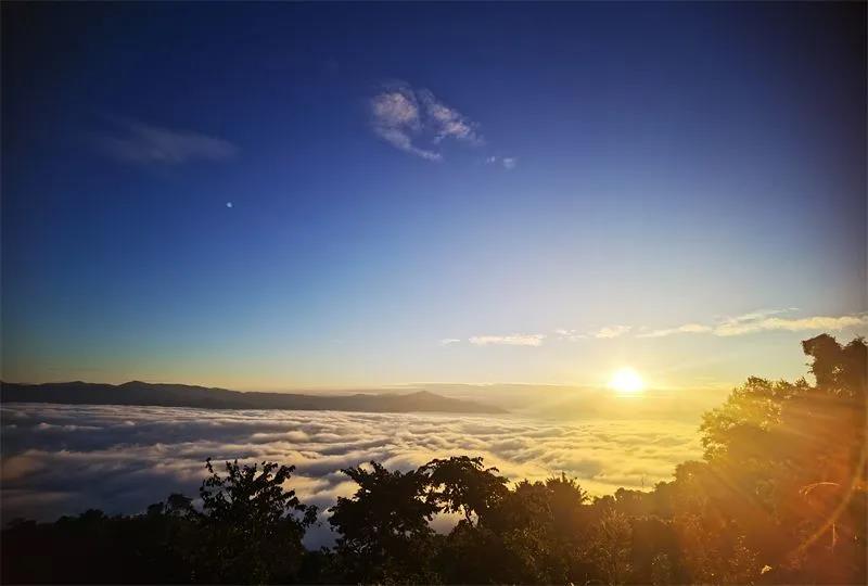 置身大蘆山的茫茫云海,如漫步云端,晨觀(guān)朝陽(yáng)初升,暮賞落日紅霞,似有一只巧手執(zhí)彩筆為遠(yuǎn)處山嵐勾勒出一幅絕美圖景。云海漫涌,群山萬(wàn)壑隱于云層之下,只有遠(yuǎn)處的山巔隱約可見(jiàn),如同天際的孤島,在白浪里沉浮翻騰。
