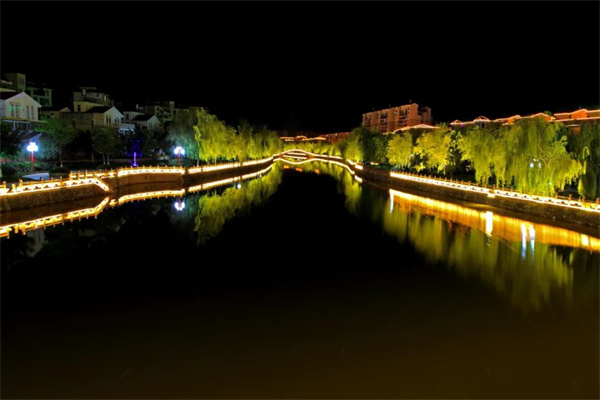 祿豐的城建在東、西、南三河交匯處,一個(gè)南北向的大壩子上。壩子像展開的扇子,弧形的扇頭是山,扇子的兩邊也是山,扇尾就是三河交匯處了,祿豐城就建在扇面上。史料記載,祿豐城是元朝賽典赤治滇時(shí)修建的?,F(xiàn)在老城已經(jīng)蕩然無存,但祿豐城的八景留了下來:西河煙柳、群峰疊翠、南嶺浮嵐、霸橋星影、春燈映月、文筆連云、桂香書院、溫泉繞霽。(溫泉遍布也是祿豐水的一大特點(diǎn)。)現(xiàn)在的祿豐城哪止八景。三河九湖:工整的河堤,南河堤上仿侏羅紀(jì)時(shí)代的林木山石。西河河堤上延綿十幾里的竹林。東河更是一個(gè)雄偉,寬闊的河面,下雨了,河面浩浩蕩蕩,枯水季,一河的游魚水鳥。分為三個(gè)臺級的河堤,一個(gè)臺級有一個(gè)臺級的景物,一個(gè)臺級有一個(gè)臺級的自我;白鷺成行魚蝦成群的東湖,山環(huán)水繞的石門湖,翠竹環(huán)抱滿湖睡蓮的龍湖……仿明清風(fēng)格建筑精美的金山古鎮(zhèn)等。祿豐,到處都是風(fēng)景。