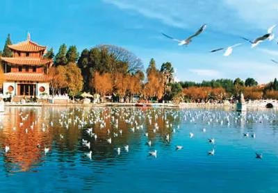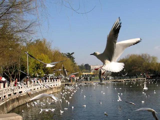 成群的海鷗就會(huì)從滇池飛來翠湖,