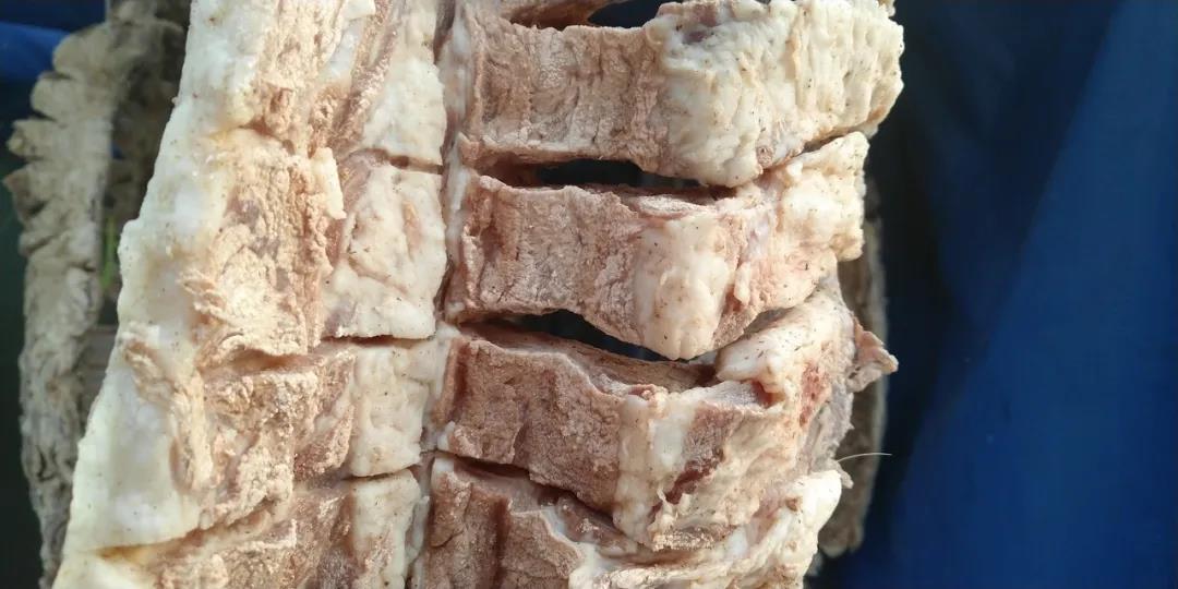 麗江獨特的氣候和天然綠色的環(huán)境,賦予了制作優(yōu)質(zhì)臘排骨的條件,自然風(fēng)干的麗江臘排骨干爽緊實、黃里透紅,色澤發(fā)亮,表面無霉斑,聞起來還有股淡淡的肉香。