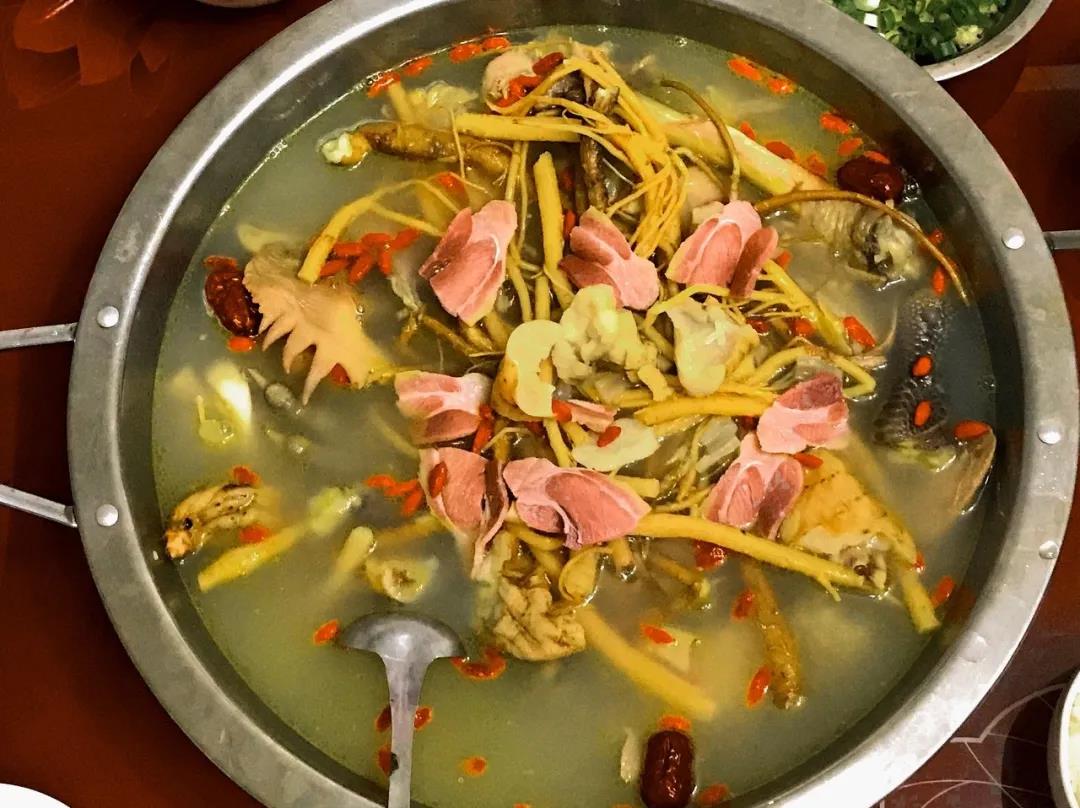 昭通天麻火腿雞火鍋,乍一聽這名字就給人一種很養(yǎng)生的感覺,吃火鍋還能養(yǎng)生是什么體驗,估計重慶娃兒想都不敢想。昭通小草壩天麻、宣威火腿、文山三七、加上農(nóng)村老母雞配合上各種滋補藥材,就是一鍋營養(yǎng)價值爆表的養(yǎng)生火鍋。
