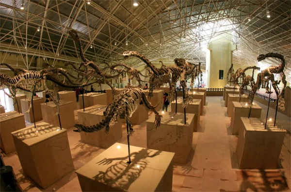 繞著溪流走到恐龍山頂,就到了恐龍大本營和遺址館。大本營內(nèi)全是仿真的恐龍雕塑及各種與恐龍有關(guān)的游戲等,碰巧我們進(jìn)館時間有些晚,人不算擁擠,看了六分鐘有關(guān)恐龍滅絕的電影,孩子嚇得縮成一團(tuán),待上樓之后,又象是到了一個快樂王國??梢院涂铸堎惻?,競猜、提問。逛了一下午,大家都有些體力不支,對游戲也自然提不起精神,否則,與恐龍賽跑倒是一項不錯的運動,可腿腳發(fā)軟,在機(jī)子上踩幾下就沒力氣了,在工作人員的提醒下,我們又匆忙趕到遺址館。遺址館內(nèi)全部是恐龍化石的組裝的骨架和零散的肢體展示,大的小的一應(yīng)俱全。從零落的殘骸中依稀可以想像兩億年前恐龍生活的畫面,然而,導(dǎo)致他們集體滅亡的根本原因卻著實令人迷惑不解,一代霸主的共同殉難引起了多方面的思考,人類不也正面臨大自然的威脅嗎?各種天災(zāi)的背后隱藏著怎樣的因果循環(huán)?人們總是在不知不覺間就破壞了自我賴以生存的環(huán)境,難平的欲壑就象無底深淵,一次次把人類自己推向險境,干旱、地震、海嘯、洪災(zāi)等一系列的災(zāi)難真是空穴來風(fēng)嗎?盡管我不聽信人類會滅絕的謠傳,但我們生存的環(huán)境卻不得不令人擔(dān)憂?!捌ぶ淮妫珜⒀筛??”我們只有把各種利益看淡一些,順應(yīng)自然規(guī)律的發(fā)展,才會真正實現(xiàn)人與自然的和諧統(tǒng)一,過上幸福和快樂的生活。