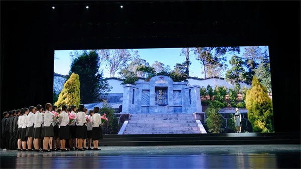 在精美的舞臺(tái)設(shè)計(jì)和演員們?nèi)谇橛诰暗纳鷦?dòng)演繹下,趙祚傳烈士的人生畫卷徐徐展現(xiàn)在觀眾眼前。當(dāng)“五四”的浪潮襲來,他挺立潮頭,點(diǎn)燃了燎原的星星之火;他撰寫了《農(nóng)民四字經(jīng)》,成為黨組織宣傳群眾、動(dòng)員群眾的革命經(jīng)書;他是中共云南省特委書記,但為了給黨組織籌活動(dòng)經(jīng)費(fèi),四處奔走,賣房賣地;他三次入獄,飽受折磨,但依然堅(jiān)定信念,和反動(dòng)派進(jìn)行不屈不撓的斗爭。