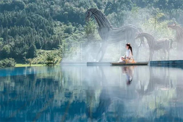 冬日清晨,在曼妙如歌的漫山鳥語中醒來,推門即是一池裊裊霧氣的湯池,投身池中,身體瞬間被熱氣包裹,還在沉睡的細胞都被喚醒了。讓人只想在這寧靜幽雅的環(huán)境中,享受天然溫泉帶來的舒適之感。
