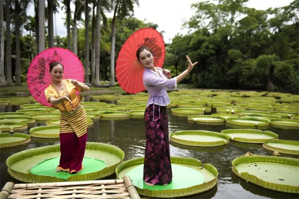 西雙版納植物園于今年7月培植出直徑直逼2米的王蓮葉片,葉片上甚至可以承載體重最高達(dá)70公斤的成年人,孩童就更不在話下了。王蓮又稱“女王的蓮花”,具備三變的特性:開花第一晚白色雌花會提升周圍環(huán)境溫度來吸引昆蟲傳粉。次日早上,花朵閉合,雌花轉(zhuǎn)性成雄花,花藥也慢慢成熟。再到第二天傍晚,王蓮會再次綻放,此時(shí)花色呈現(xiàn)粉紅色或洋紅色,花朵就由白變紅了。王蓮果實(shí)種子極多,有的可達(dá)300-400顆,最多的可達(dá)700顆。