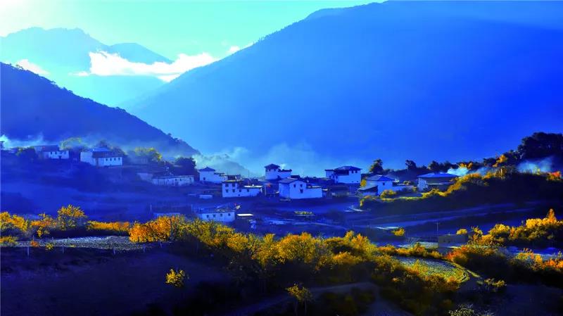 牦牛走過(guò)香巴拉的山崗?fù)虿贿h(yuǎn)處的家: