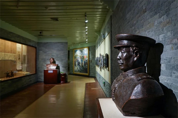 走進(jìn)講武堂陳列室,歷史的厚重感撲面而來,在眾多展品中,你會(huì)發(fā)現(xiàn)一座面容堅(jiān)毅而慈祥的人身雕像,雕像旁的玻璃展柜里有著他曾經(jīng)身著過的軍裝、手跡等,他就是中國的開國元?jiǎng)?、十大元帥之首——朱德?br />