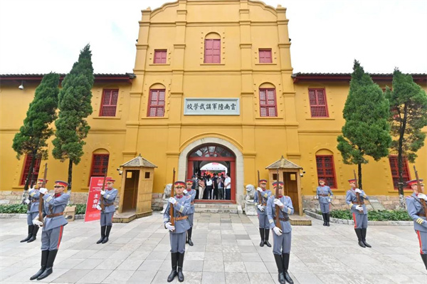 歲月變遷,暗淡了刀光劍影;列艦層樓,湮滅于歷史長河;鐵馬金戈,埋葬在青冢黃昏路。如今講武堂杏黃色的建筑在斑駁的陽光下熠熠生輝,恍惚間百年間的歷史在此刻重疊,一名名英勇的滇軍在操場上操練并高唱著講武堂的軍歌:“風(fēng)潮滾滾,感覺那黃獅一夢醒;同胞四萬萬,互相奮起作長城;神州大陸奇男子,攜手去從軍。哪怕它歐風(fēng)美雨來勢兇狠;練鐵肩,擔(dān)重?fù)?dān),壯哉中國心!正當(dāng)中!中華男兒,要憑那雙手撐蒼穹;睡獅昨天,醒獅今日,一夫振臂萬夫雄;長江大河,翹首昆侖風(fēng)虎云龍;泱泱大國取多宏,黃帝之裔天驕子,紅日中國心!正當(dāng)中!”他們所傳唱的意志在當(dāng)今中國軍人的身上依舊可以體現(xiàn),而作為后輩的我們也可以告慰先烈:幸不辱命!