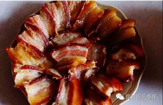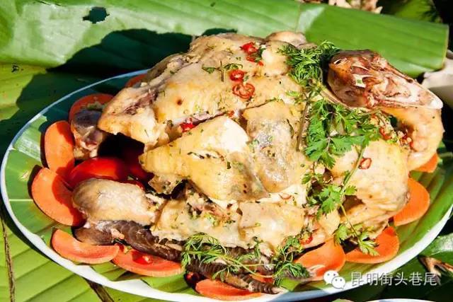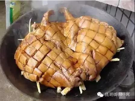 柳蒸豬頭是白族傳統(tǒng)名菜之一,把豬頭放在柳條架上入鍋蒸制而成。必須選用甜又鮮的柳條,不能選用苦柳,色澤金黃,肉質(zhì)鮮香,味醇清爽,食而不膩,風(fēng)味獨特。
