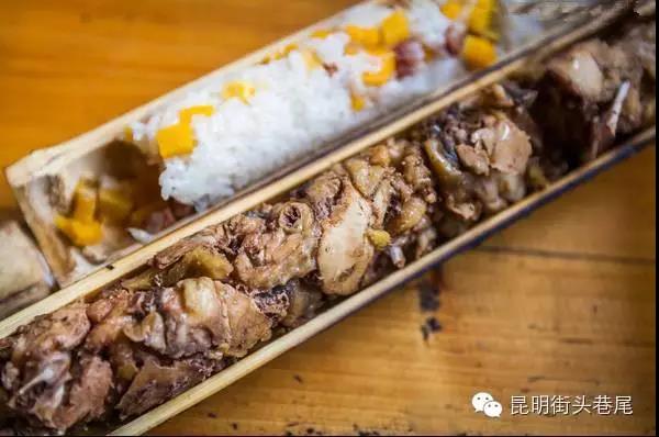 竹筒雞是云南哈尼族的傳統(tǒng)名吃,哈尼族人的居住環(huán)境滿山翠竹,他們就地取材,利用竹筒烹飪,歷史久遠。