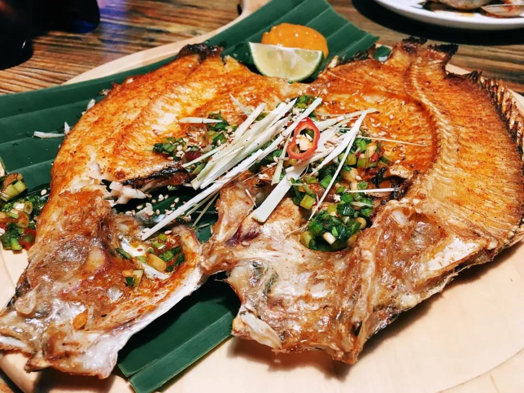 河口的燒烤攤一般就在魚塘不遠(yuǎn),魚是當(dāng)天的新鮮魚,加上山上現(xiàn)摘的香茅草,野芫荽,蔥姜和醬油腌制30分鐘,上架用櫟碳火烘烤至焦黃上桌,然后沾著用干小米辣和酸醋做的作料吃。