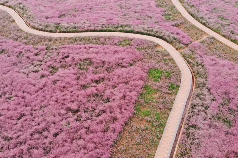 呈現(xiàn)出粉色云霧海洋的壯觀景色。