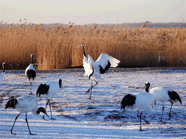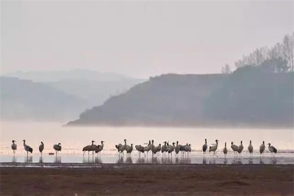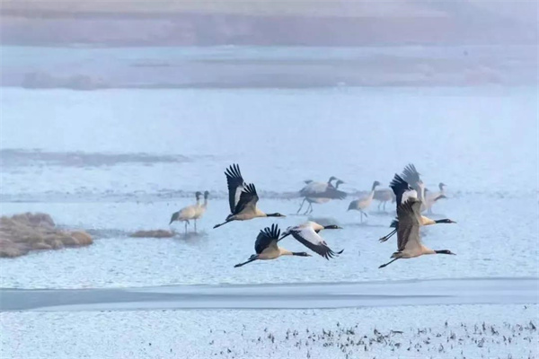 一群黑頸鶴帶著思念飛回曲靖會(huì)澤